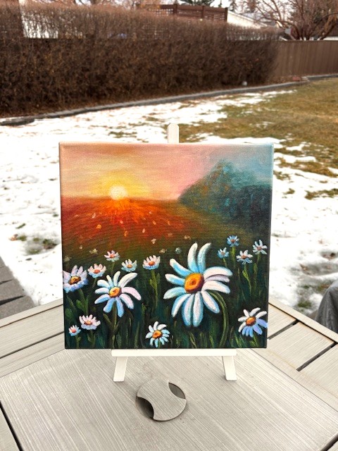 12 x 12 stretched canvas print, dept is 3/4 and comes ready to hang