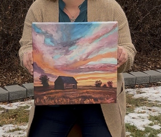 14 x 14 stretched canvas print, dept is 3/4 and comes ready to hang